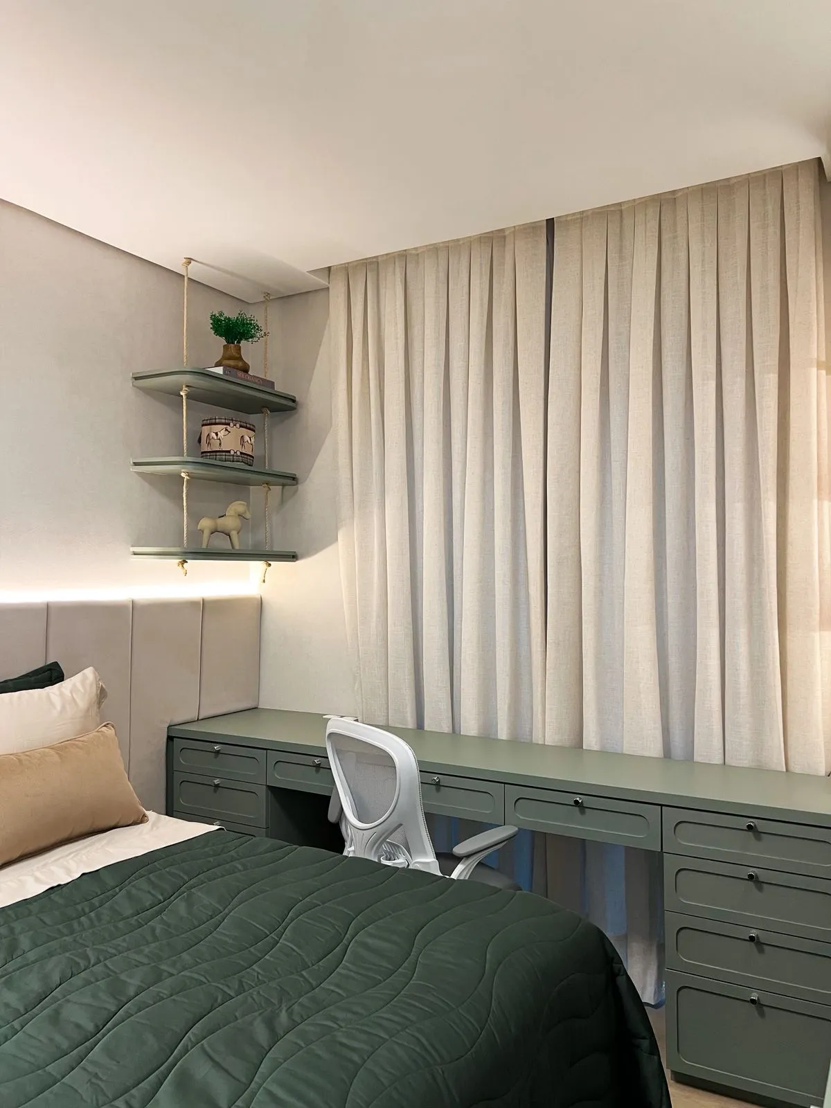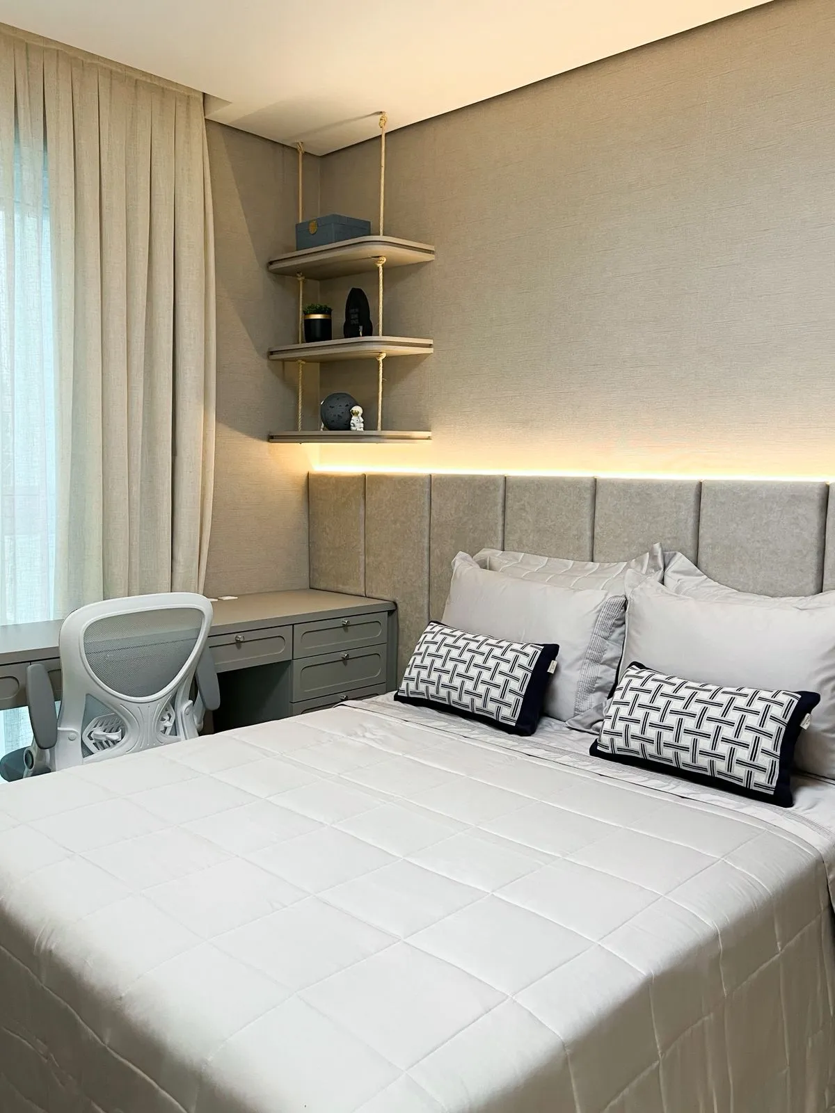 Este projeto residencial, desenvolvido em parceria com a Karina Cruz Interiores, foi pensado para atender à rotina de uma família com dois meninos, unindo conforto, funcionalidade e estética. A Namai Decor assinou a curadoria de papéis de parede, aromas, decorações e mobiliários, trazendo identidade e sensibilidade a cada ambiente. As escolhas de materiais, texturas e elementos sensoriais criam espaços acolhedores e contemporâneos, que refletem o estilo de vida da família com leveza e sofisticação. O resultado é um apartamento que valoriza o bem-estar, a convivência e o prazer de viver o lar.
