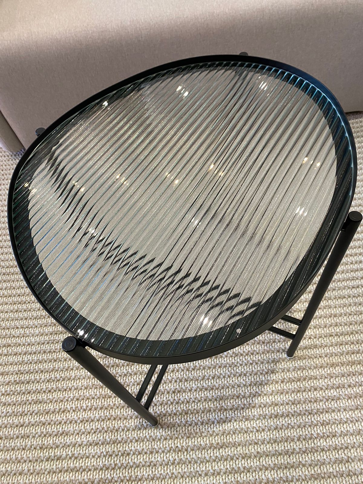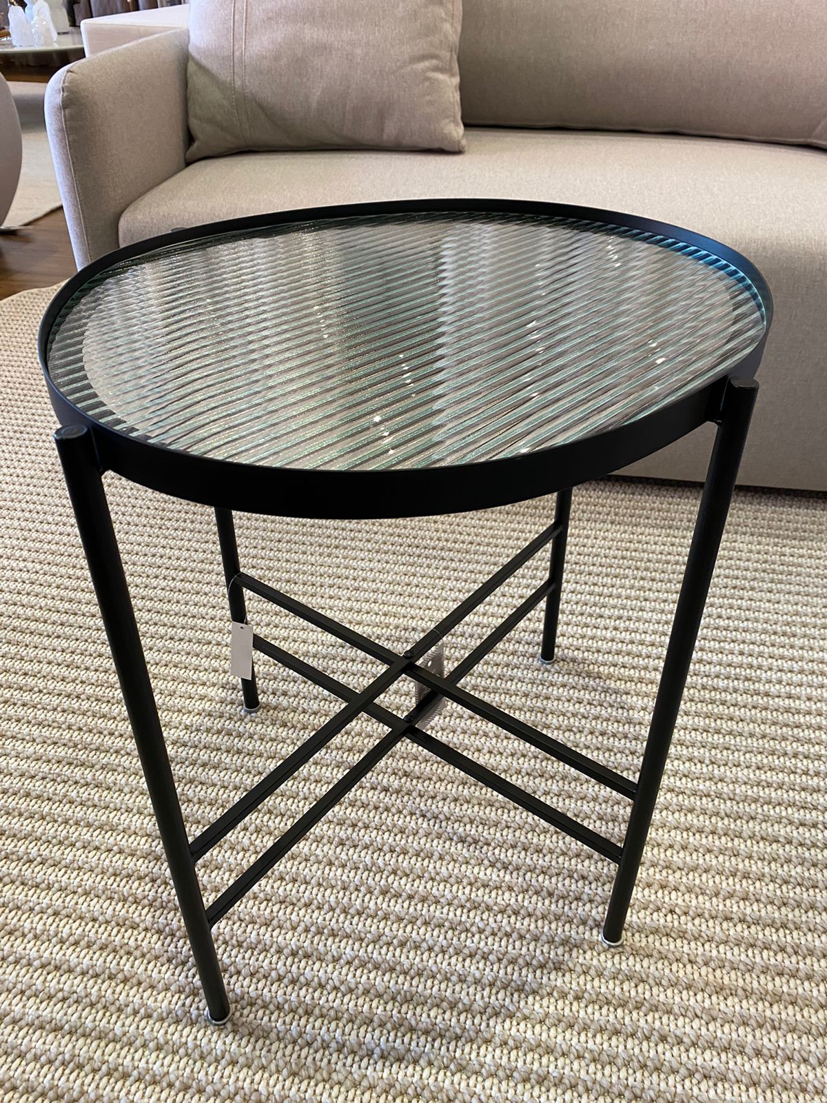 A Mesa Auxiliar em metal preto é uma peça que une robustez e estilo contemporâneo. Seu tampo orgânico em vidro canelado não apenas traz um toque de textura, mas também proporciona uma estética sofisticada e única. O design clean e elegante a torna ideal para qualquer ambiente, seja na sala de estar, no escritório ou no hall de entrada. Perfeita para apoiar livros, vasos ou pequenas decorações, esta mesa é um elemento funcional que também atua como um statement decorativo. Adicione um toque de modernidade ao seu espaço com esta peça que destaca o charme e a versatilidade do design atual.A 55 x L 55 x C 501 UN