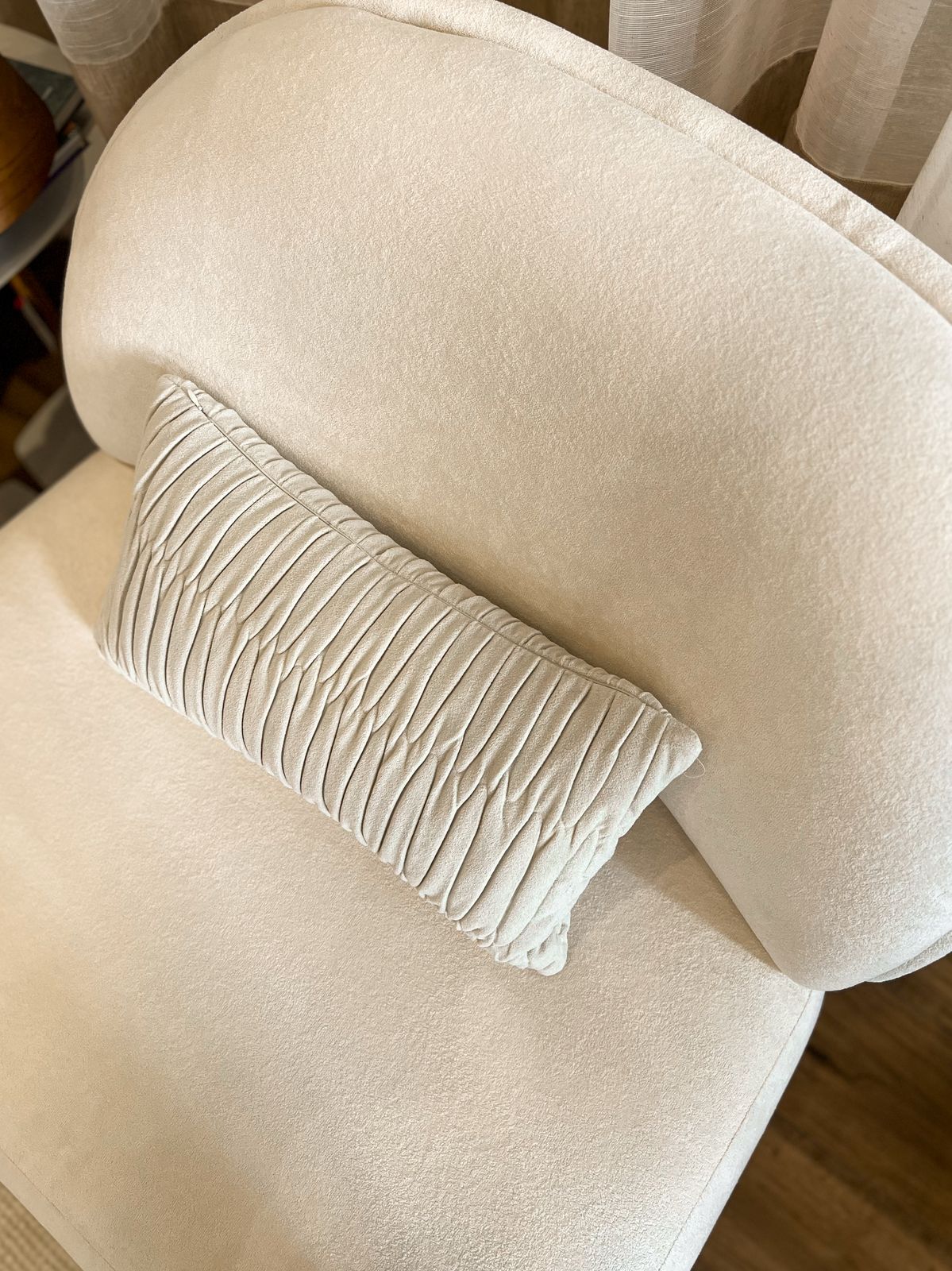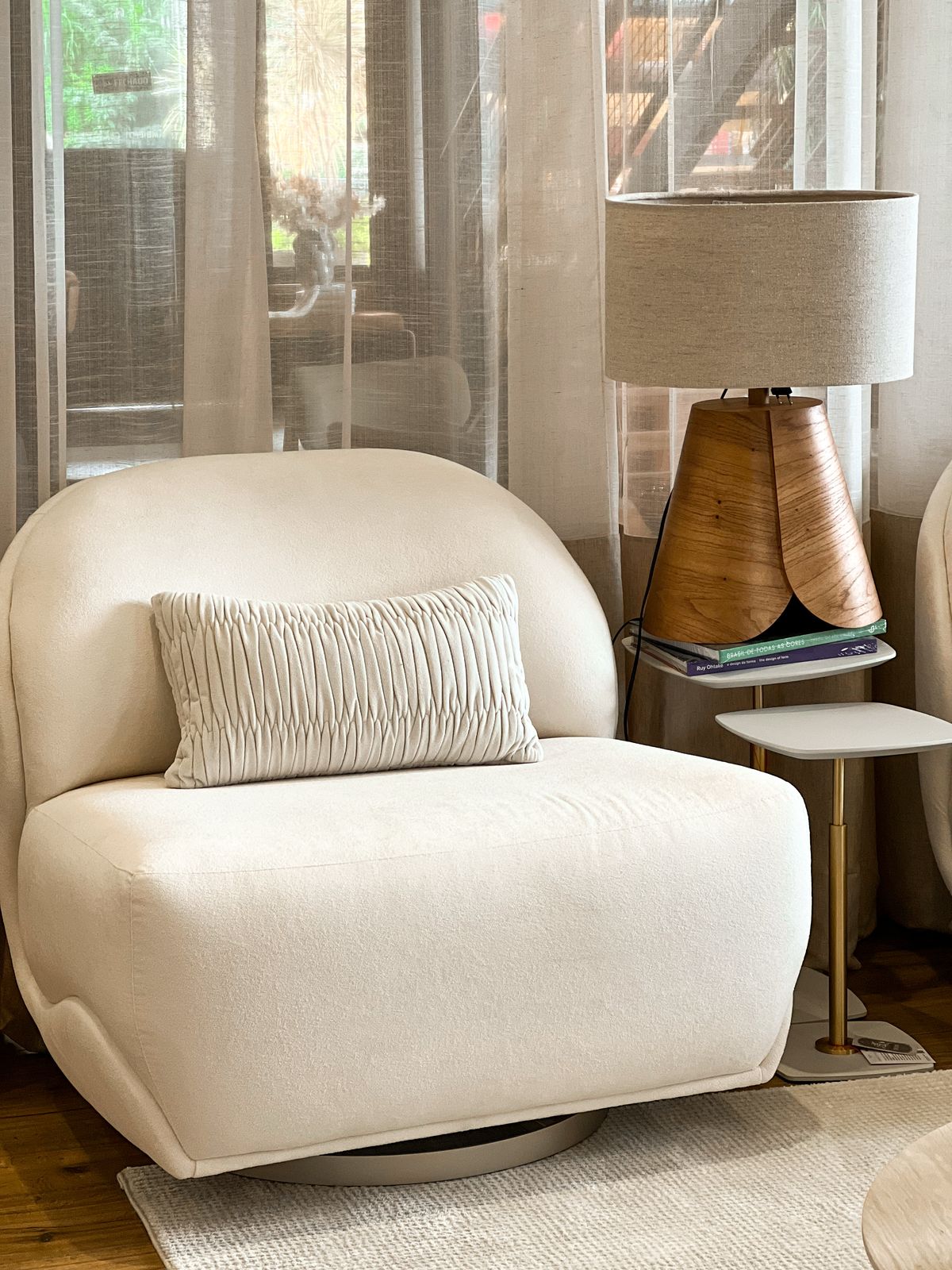 A Poltrona Cuco da Enele é uma peça de design contemporâneo que combina conforto e sofisticação. Com base giratória oculta na cor champanhe, oferece mobilidade discreta e elegante. Suas linhas curvas e contínuas, sem braços, proporcionam um visual leve e acolhedor. Detalhes de rebatido na costura do assento e encosto evidenciam o cuidado artesanal da marca. Ideal para ambientes que valorizam estilo e funcionalidade.90cm BRANCA / BASE CHAMPANHE GIRATÓRIA2 UN