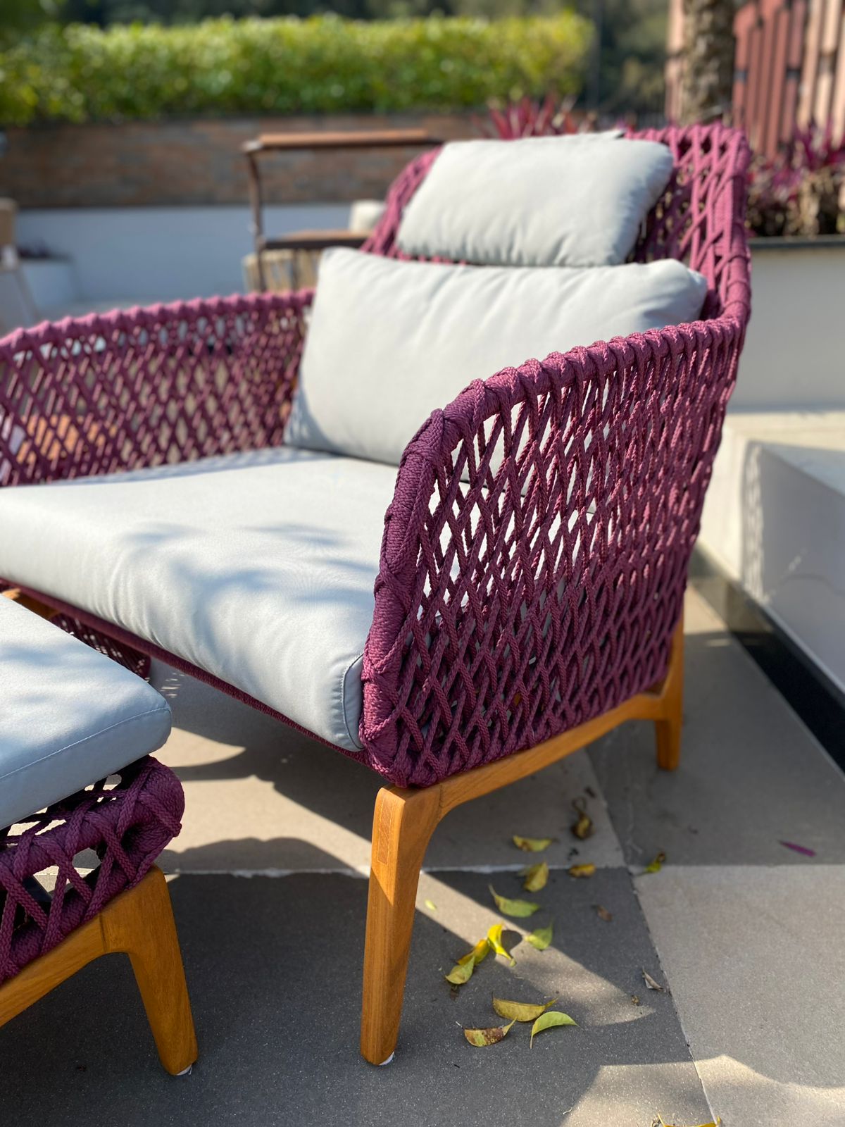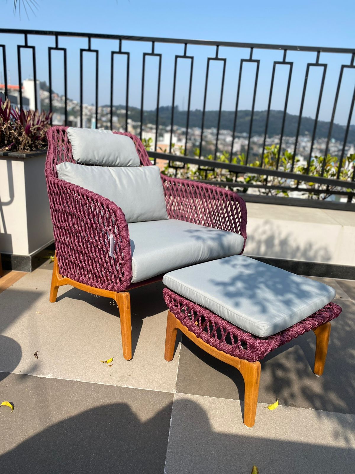 A Poltrona e Puffe Anaue da DonaFlor Mobília traz um toque de sofisticação e aconchego às suas áreas externas, com um elegante contraste entre o bordo e o cinza. Seu design contemporâneo e acolhedor convida ao relaxamento, enquanto o puffe oferece versatilidade e conforto adicional. Fabricada com materiais resistentes às intempéries, esta coleção é ideal para criar um espaço externo encantador e durável. Transforme sua varanda ou jardim em um refúgio estiloso, perfeito para momentos de descontração e convívio. Com a Anaue, você combina beleza e funcionalidade em cada detalhe!POLTRONA - A 90 x A ASS 45 x L 80 x C 85 x P 55PUFFE - A 40 x L 50 x C 50 - 1 UN CADA