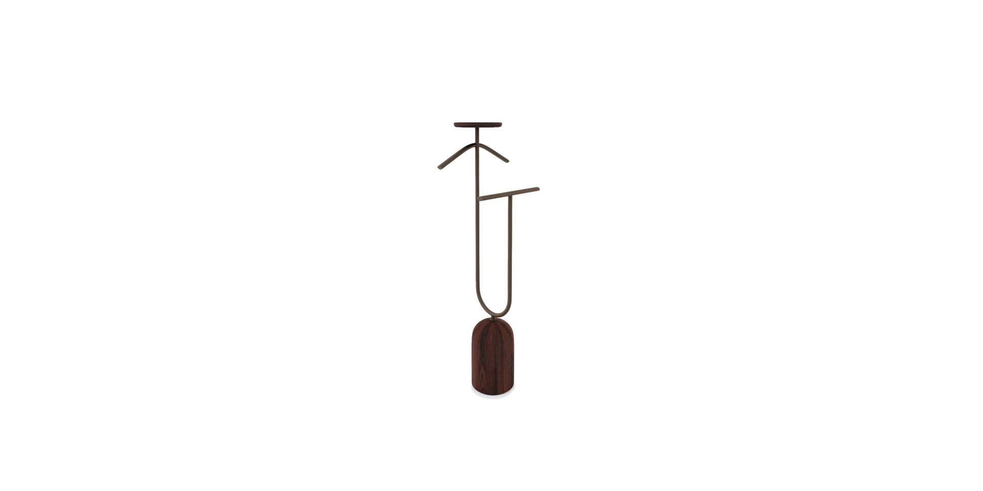 Mancebo da linha Sammy com hastes e cabides multifuncionais e estrutura em metal sobre base de madeira. Combina charme Art Déco e organização intuitiva para roupas e acessórios com visual elegante.