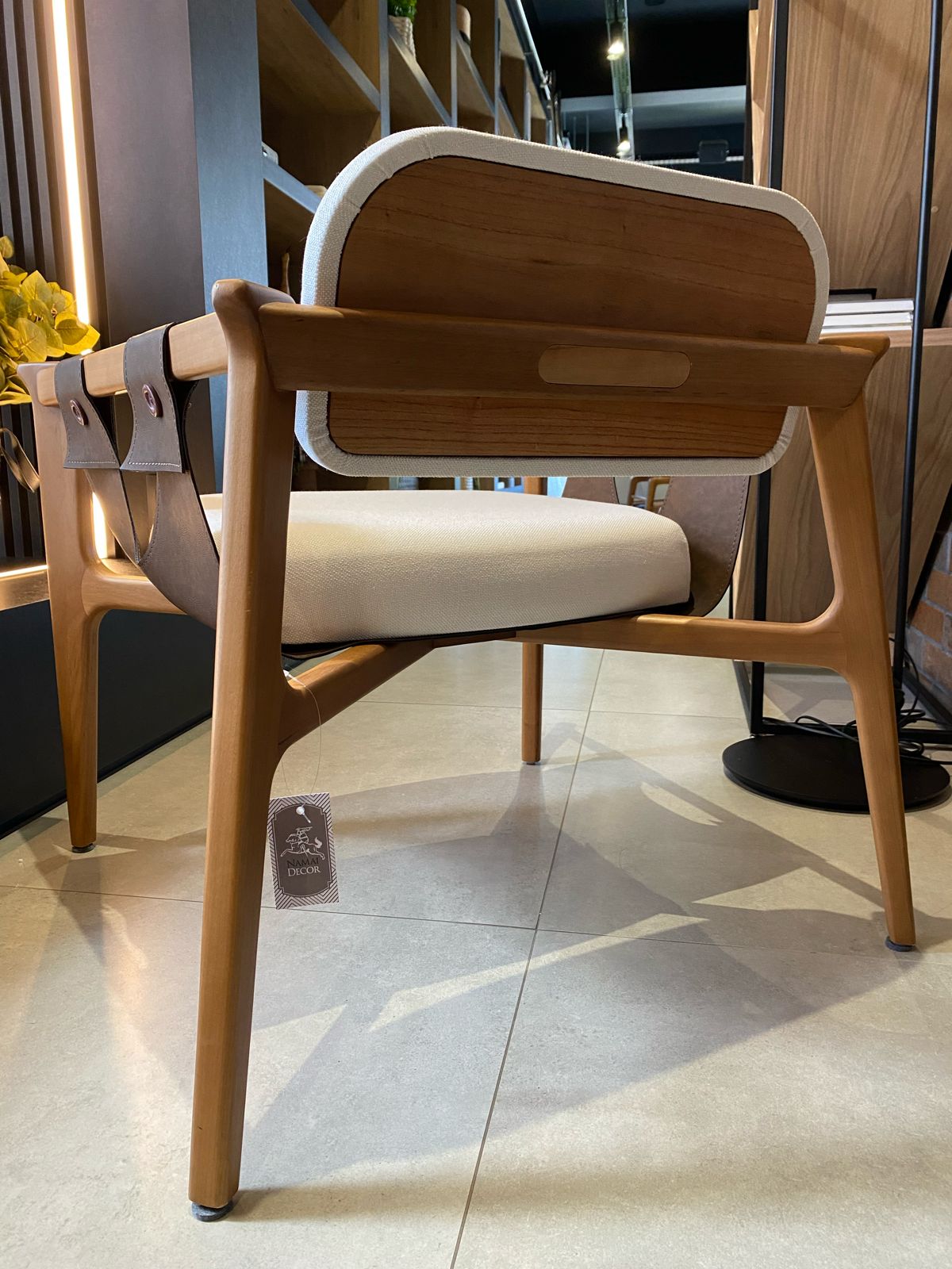 A poltrona Namu é uma peça que se destaca pela sua mistura interessante de elementos e materiais, resultando em um estilo surpreendente e exclusivo. Combinando tecido, couro e madeira, esta poltrona apresenta uma variedade de texturas que chamam a atenção e criam um visual único. Seus detalhes cuidadosamente trabalhados e a harmonia entre os diferentes materiais garantem não apenas um design sofisticado, mas também um conforto excepcional. A poltrona é a escolha perfeita para quem busca uma peça de destaque que agregue elegância e personalidade ao ambiente.A 75 x A ASS 45 x L 75 x C 70 x P 451 UN