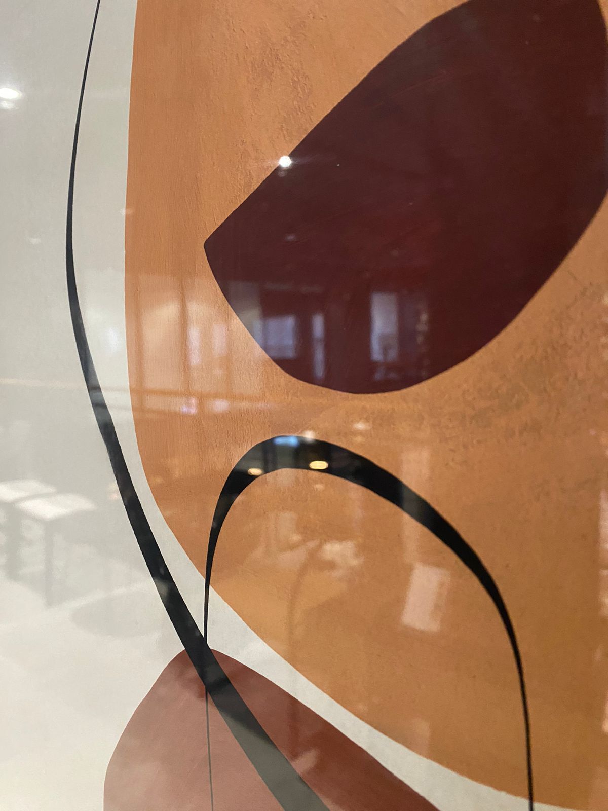 Este quadro da Karpakoi traz uma combinação vibrante de tons laranja e avermelhado, envoltos por círculos pretos que criam um contraste marcante. O fundo claro destaca as cores quentes de forma equilibrada, enquanto o acabamento em acrílico adiciona brilho e profundidade à peça. Ideal para ambientes que buscam uma arte de impacto visual, com sofisticação e modernidade.A 80 x L 60 x P 61 UN