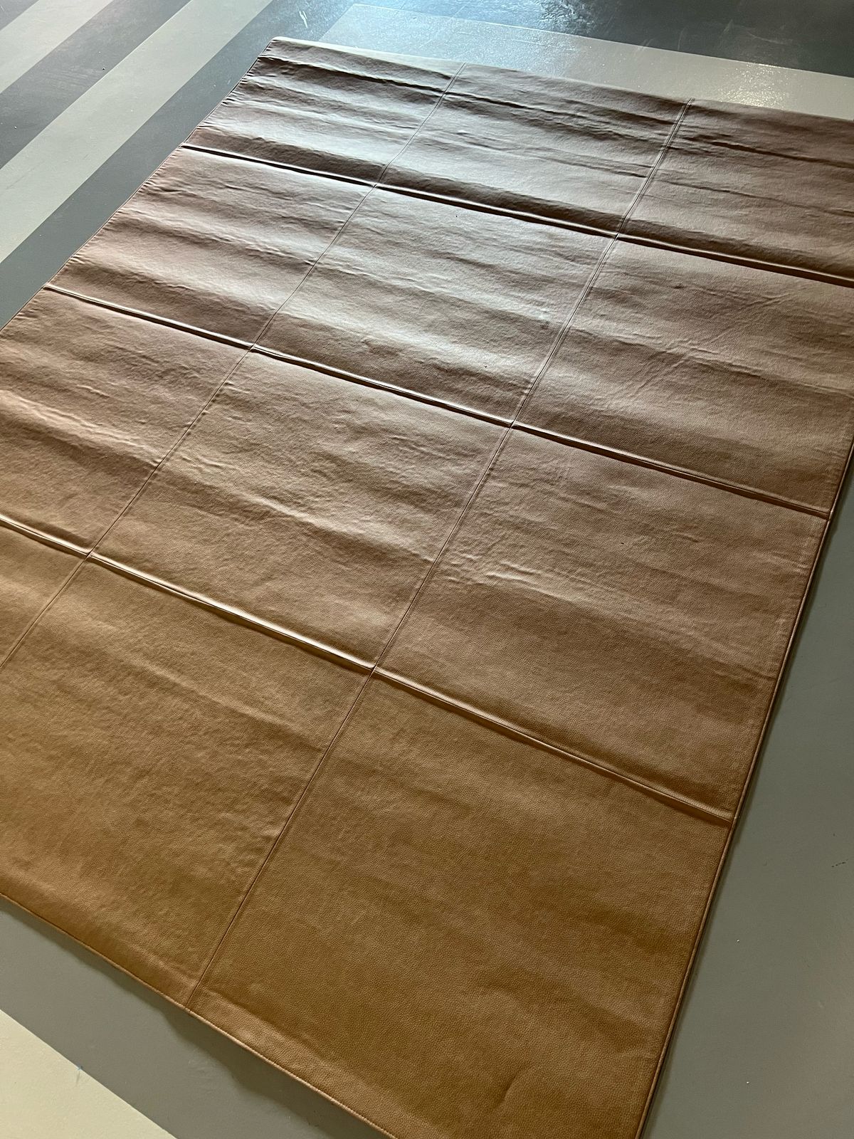 O Tapete Nampa, da Fina Estampa, é feito em couro natural na cor caramelo, unindo sofisticação e autenticidade. Sua textura marcante e acabamento impecável valorizam ambientes contemporâneos com um toque rústico e elegante.200cm X 250cm