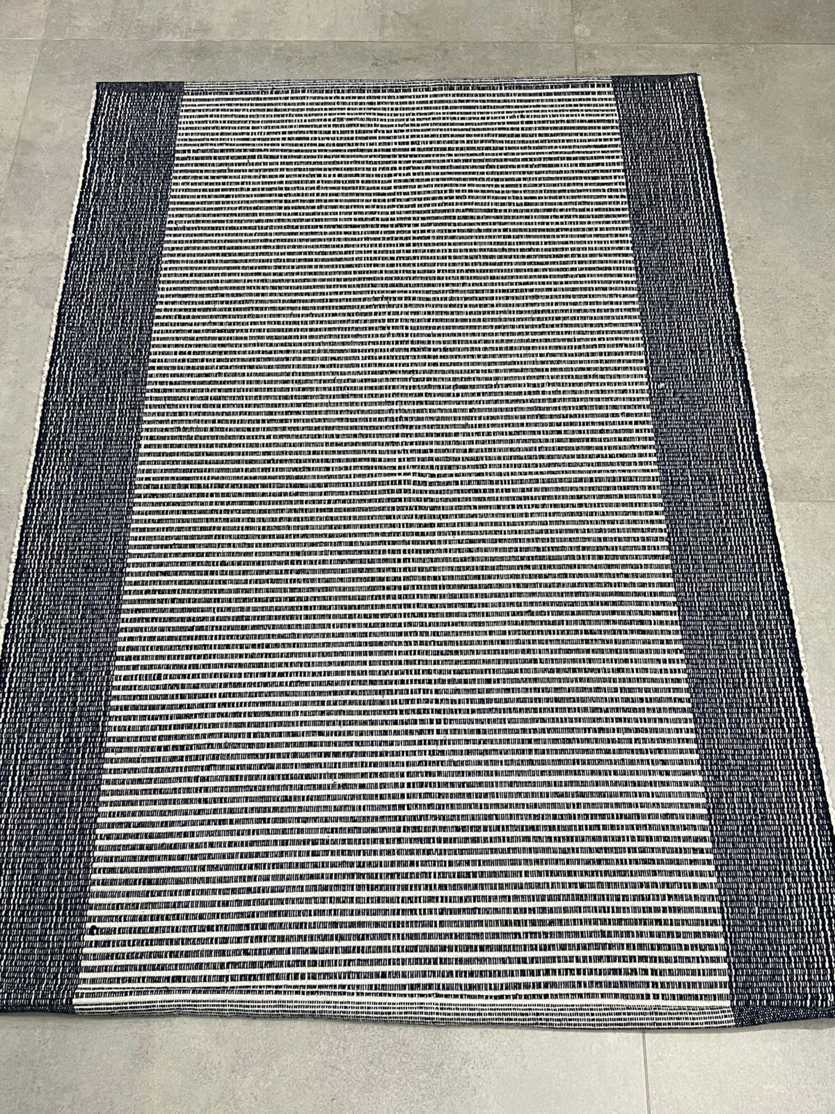 O Tapete Tear Pedal da Oficina da Roça traz o charme do feito à mão em um formato alongado, ideal como passadeira. Com listras em azul e branco, seu visual leve e atemporal combina com diversos estilos de décor, levando um toque artesanal e acolhedor para o dia a dia.100cm X 150cm