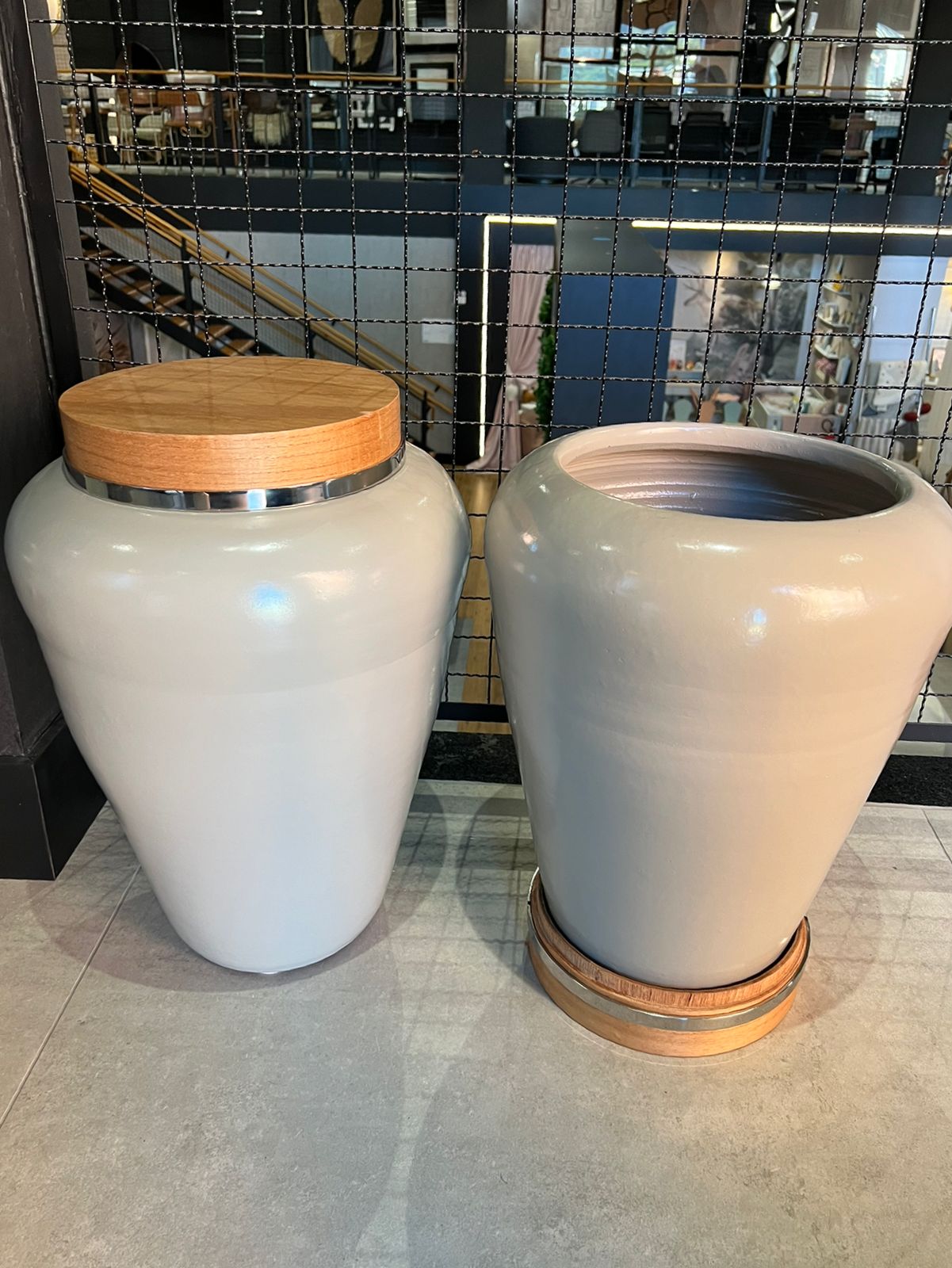 O vaso de chão da Studio Casa, com acabamento acetinado em tom de cinza claro, é uma peça sofisticada que agrega elegância a qualquer ambiente. Sua tampa de madeira com detalhe em prata proporciona um toque refinado, combinando com uma decoração contemporânea. Ideal para complementar salas de estar ou varandas, esse vaso é perfeito para quem busca beleza e funcionalidade em itens de decoração de alto padrão.A 55 x D 402 UN