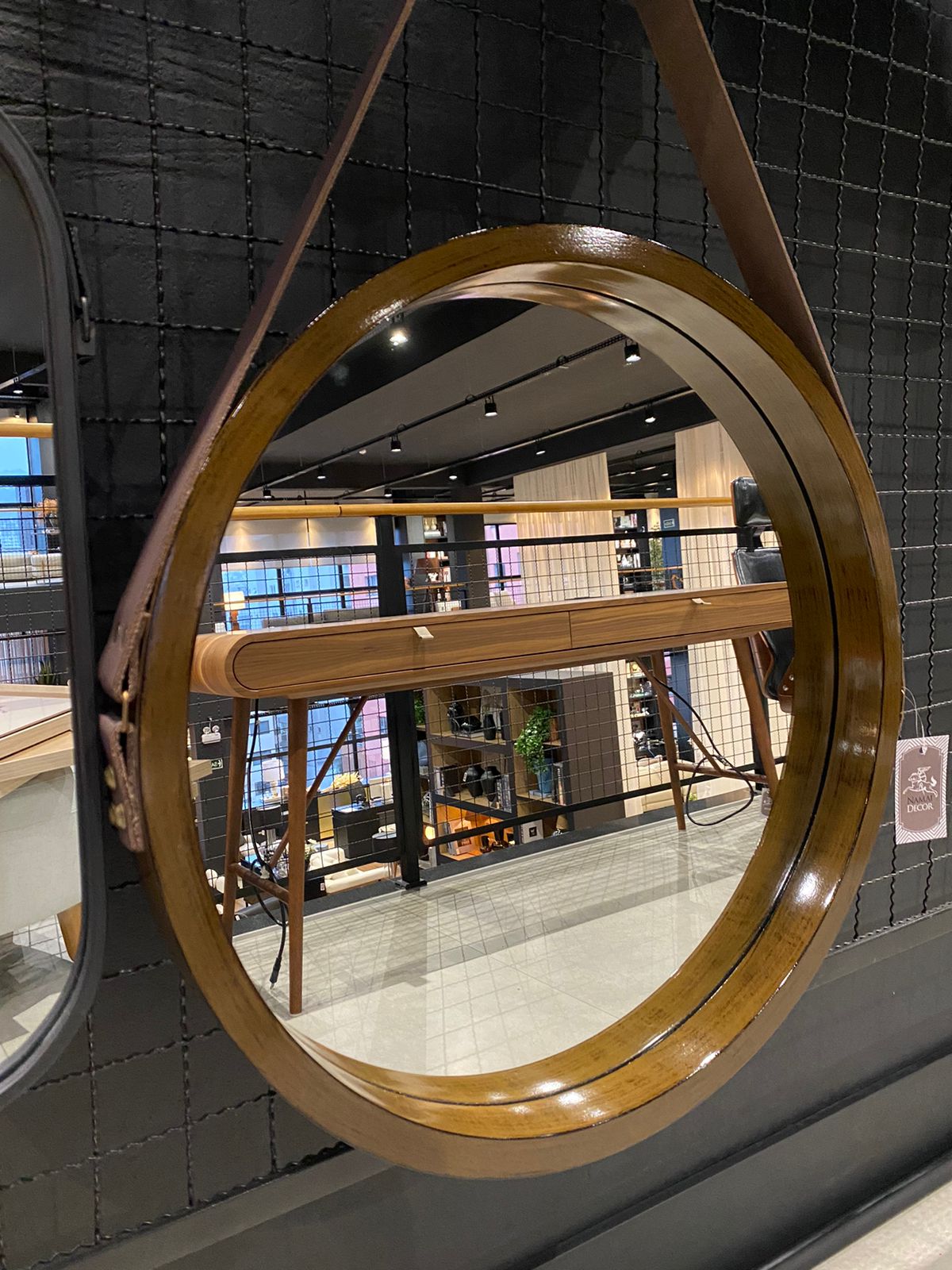 O Espelho Redondo em Madeira com Alça em Couro da Madeplan é uma peça que traz calor e estilo à sua decoração. Com uma moldura de madeira natural e uma elegante alça de couro, este espelho combina elementos rústicos e contemporâneos de forma harmoniosa. Perfeito para ser pendurado em salas, quartos ou entradas, ele não apenas reflete sua imagem, mas também adiciona um toque de sofisticação ao ambiente. SUPORTE EM COURO MARROMA 85 x L 62 x P 6 x D ESPELHO 601 UN