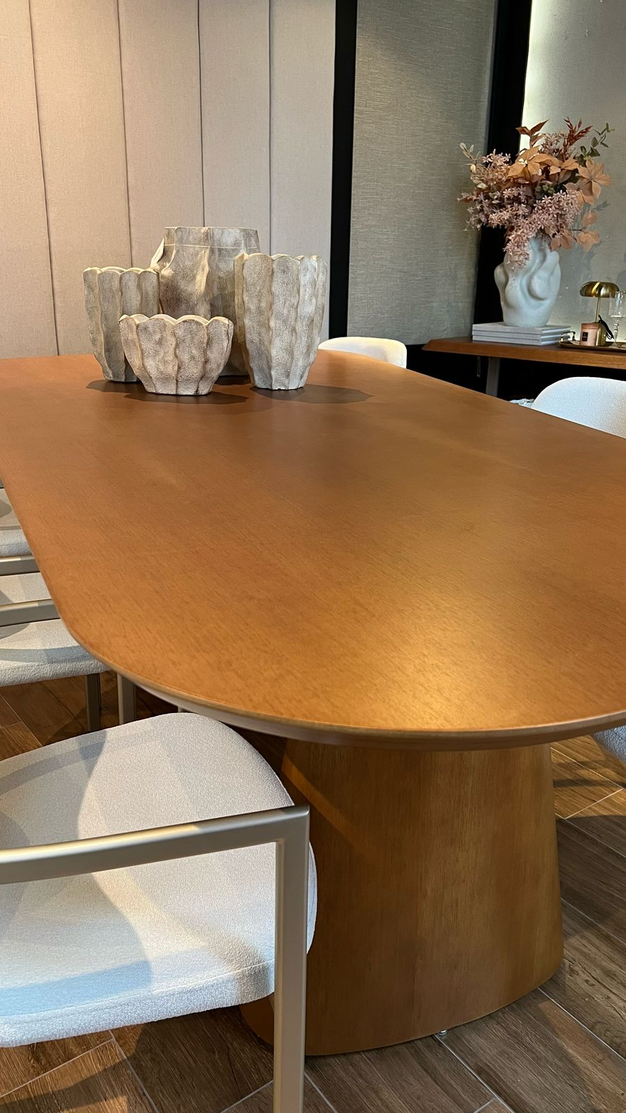 A mesa de jantar Solis da Niruma combina linhas contemporâneas e materiais nobres para transformar sua sala de jantar em um ambiente sofisticado e acolhedor. Com design elegante e estrutura robusta, ela é perfeita para quem busca beleza e funcionalidade em um único mobiliário. Ideal para compor espaços que valorizam o convívio e o bom gosto.240 X 120 cmAMADEIRADO COR 401 UN