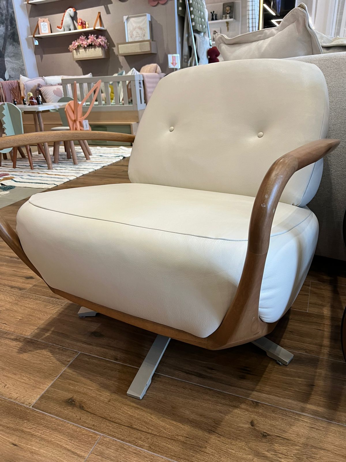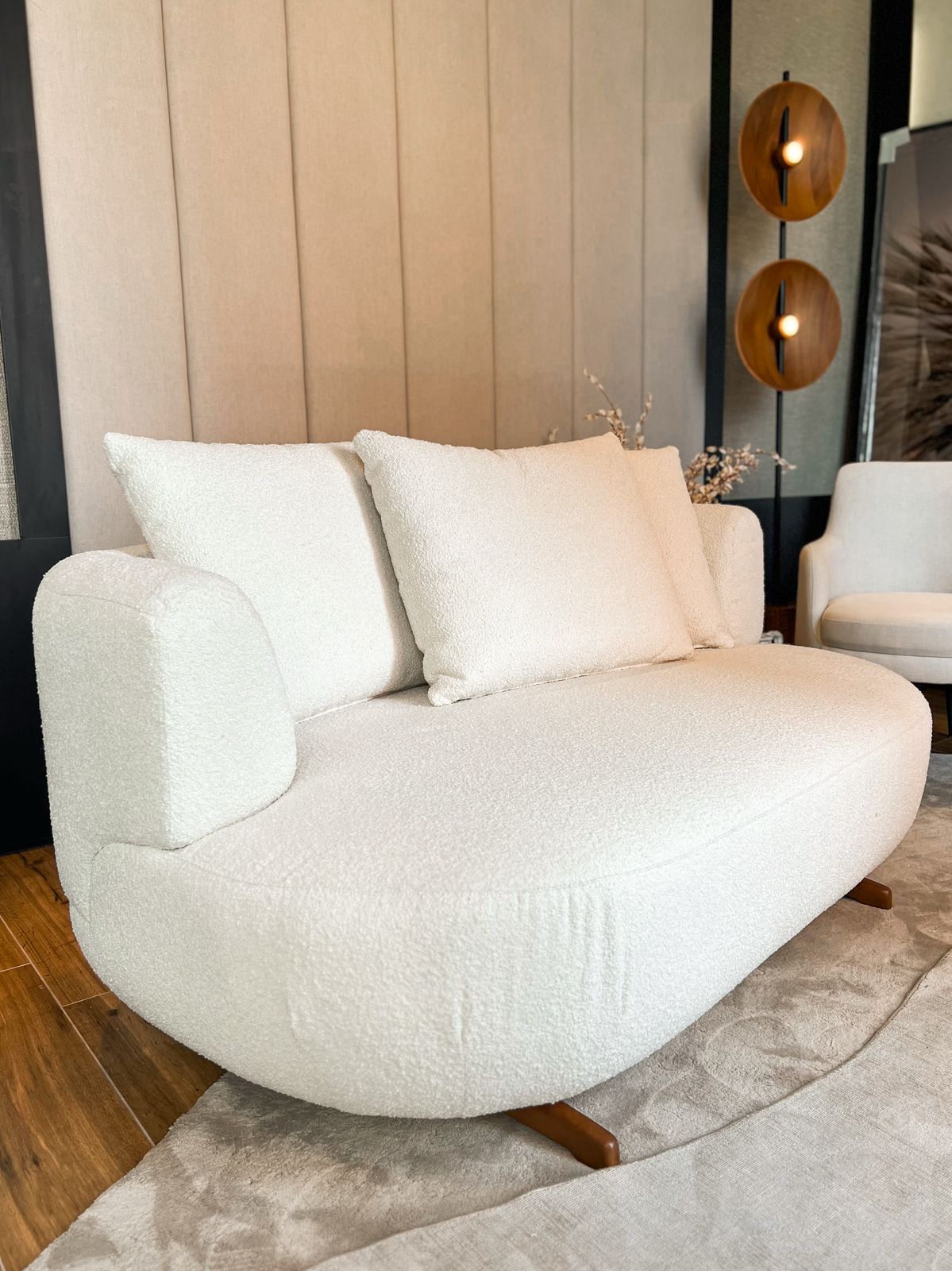 A Poltrona Chaise Céu da Enele, assinada por Daniela Ferro, é uma peça que une design contemporâneo e conforto excepcional. Com base em madeira na tonalidade amêndoa e estofado branco, suas linhas orgânicas e envolventes proporcionam um visual leve e sofisticado. Ideal para ambientes que valorizam estilo e bem-estar.150 X 110 cm BRANCA / BASE AMENDOA1 UN