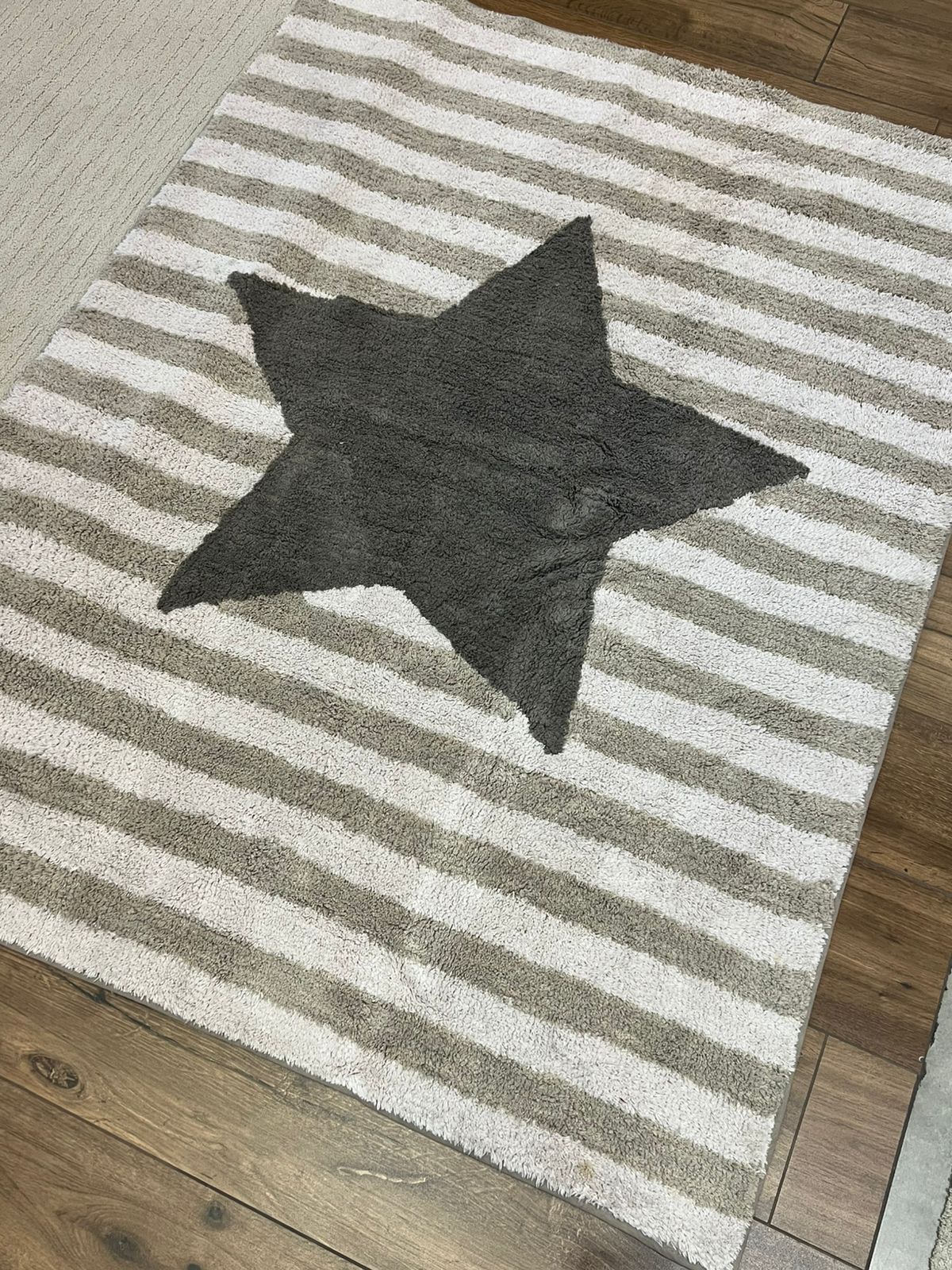 Com listras delicadas em verde claro e bege, o Tapete Estrela da Bup Baby traz suavidade e charme ao ambiente. Ao centro, uma estrela em verde mais escuro adiciona um toque lúdico, tornando-o perfeito para espaços infantis acolhedores e cheios de personalidade.120cm X 160cm